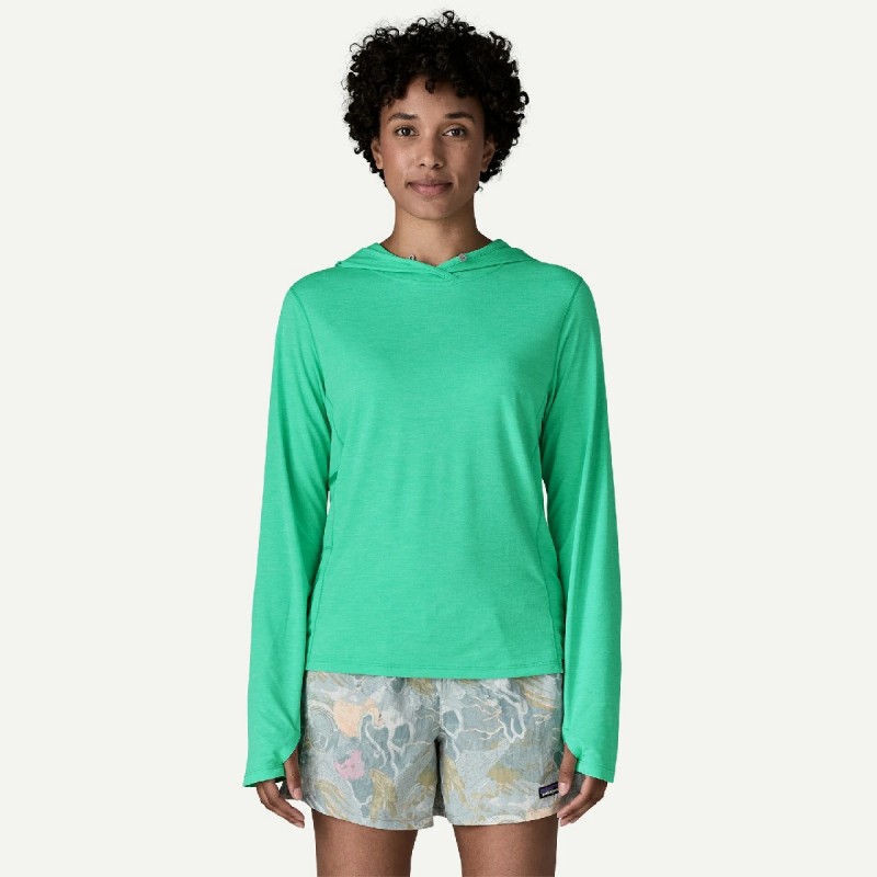Le Capilene® Cool Sun Hoody offre une protection anti-UV UPF 40+, évacue efficacement la transpiration et sèche rapidement. Sa construction garantit un effet protecteur naturel contre le soleil qui résistera au temps. Fabriqués en polyester 100% recyclé, ils sont nos t-shirts techniques qui protègent le mieux du soleil. Conçus pour réguler votre température corporelle pendant les longues journées sur l’eau.